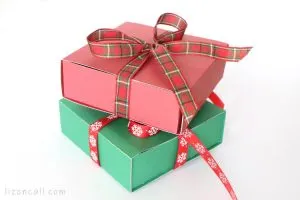 These bird house treat boxes are wicked quick to make and especially cute for the season with the hand-painted watercolor details on them. Just print out the file onto the cardstock, cut it out, and fold along all the lines. To make it stay box shaped, glue the tab on the side to the inside of the box, fold the flaps up and glue them down as you go. For the top of this milk-carton style box, just punch two holes in the top to string your ribbon through. Or staple or grommet the top closed–creativity is encouraged!