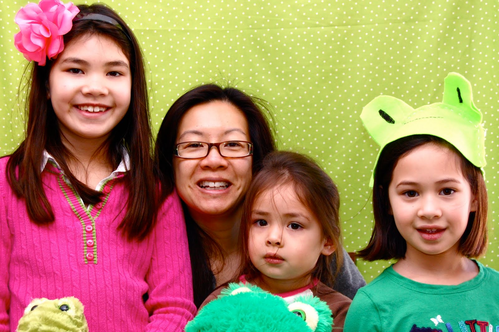 Everyone got to sit in our “photo booth” and use some props to dress up like the little frog prince or just give him a big hug. Probably the best part of this was that I ended up with a picture of everyone that attended the party; there was no evading the camera! After the party, I had prints made and taped them to the backs of all the thank you notes. It’s super-easy to do a photo booth…just hang some fabric as a backdrop in a well-lit area. At our party, I assigned Grandpa as the official photo booth picture taker so I could focus my attention elsewhere.
