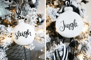 Cut the images out of the glitter vinyl and weed. Don’t forget to mirror all the images! Center the red “deck the halls” on the shirt and use your Cricut EasyPress to iron onto the shirt using the recommended settings. Wait for the vinyl to cool, then peel the carrier sheet.