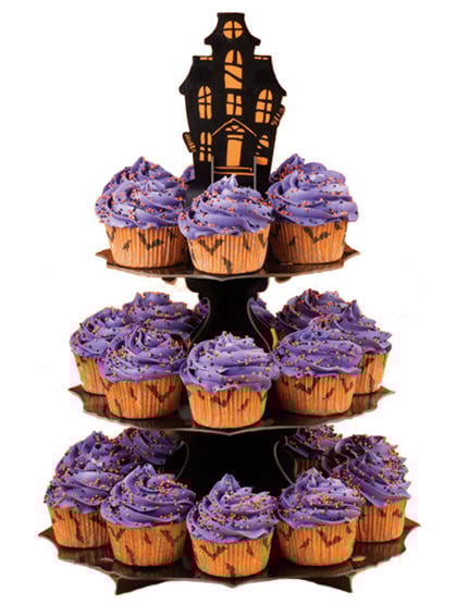 Another spooktacular way to display all those yummy Halloween cupcakes is with Wilton’s Haunted Manor Cupcake Stand. This stand is inexpensive, and has the added extra bonus of folding flat for easy storage!