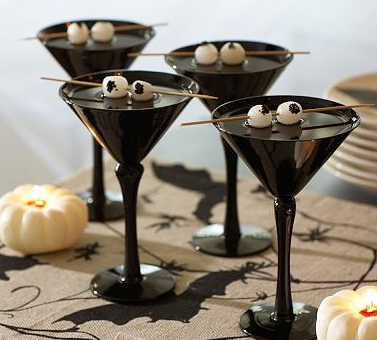 Presentation is everything, and the bone cocktail glasses from Pottery Barn certainly provide that. Black glass with a bone shaped stems ensure you’ll be shaken, not stirred!