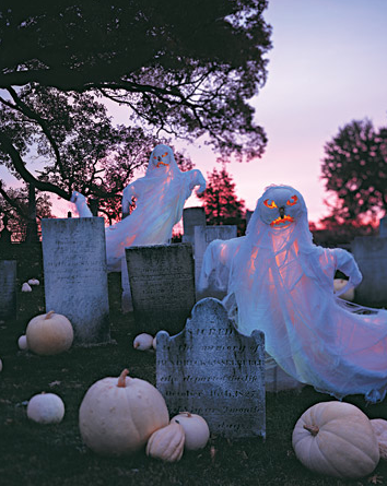 If you want more of an eerie effect for your outside, Martha Stewart has quite a few inventive ideas on how to spook your friends and neighbors! There’s this creepy graveyard