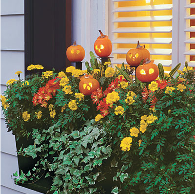 And for those that have a bit of a sense of humor, Southern Living also has instructions for tiny pumpkin stakes for the flowerbeds an flower boxes!