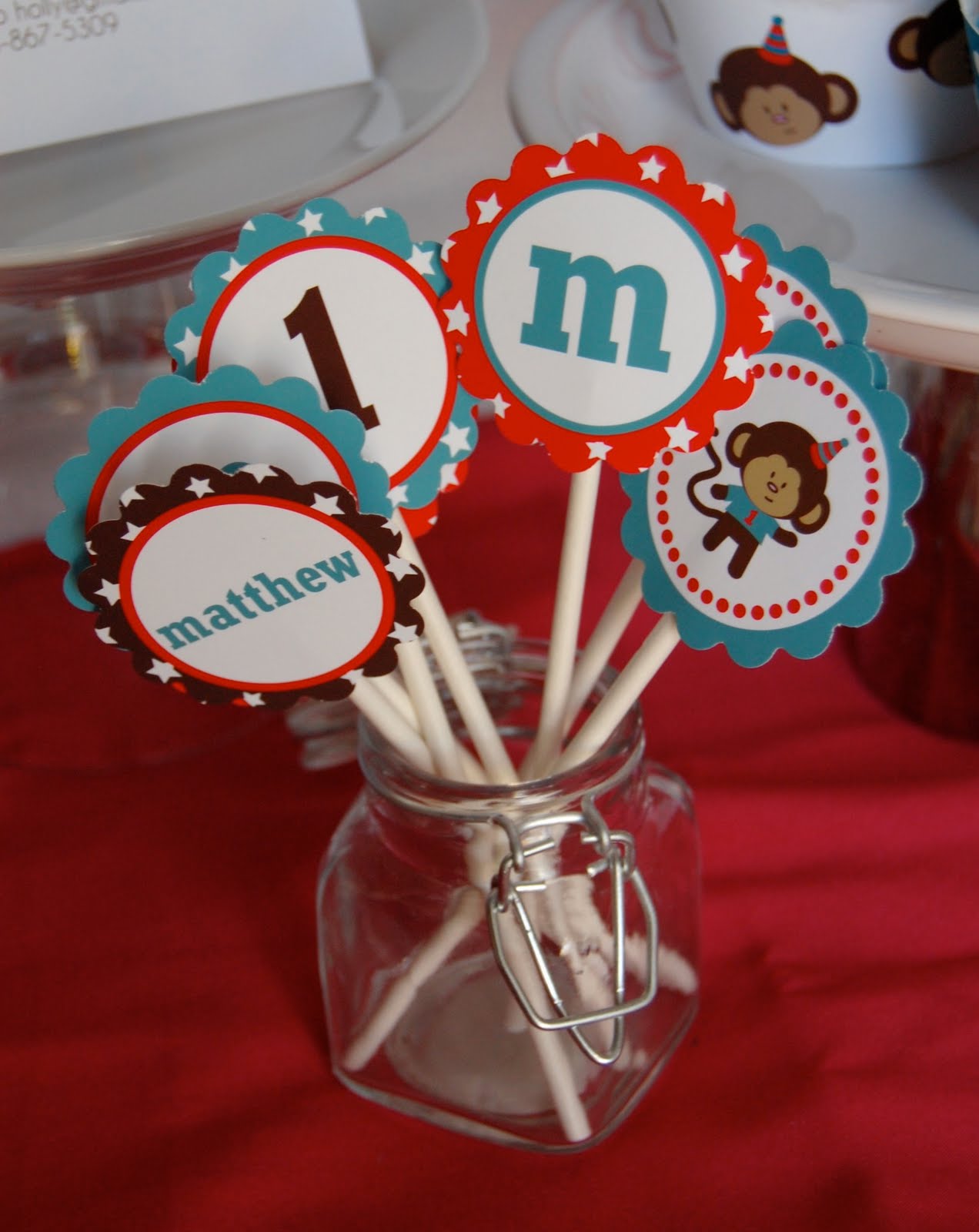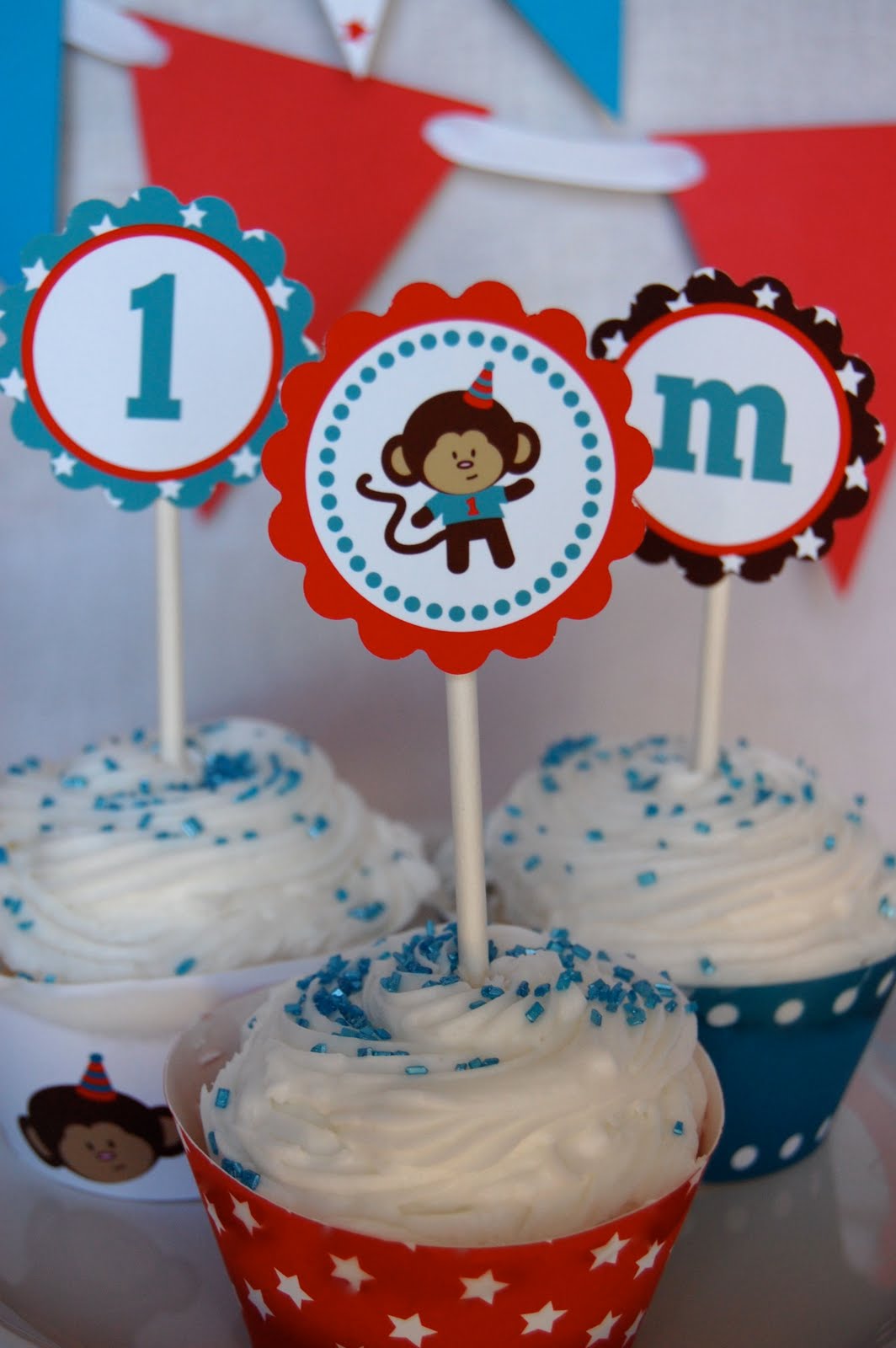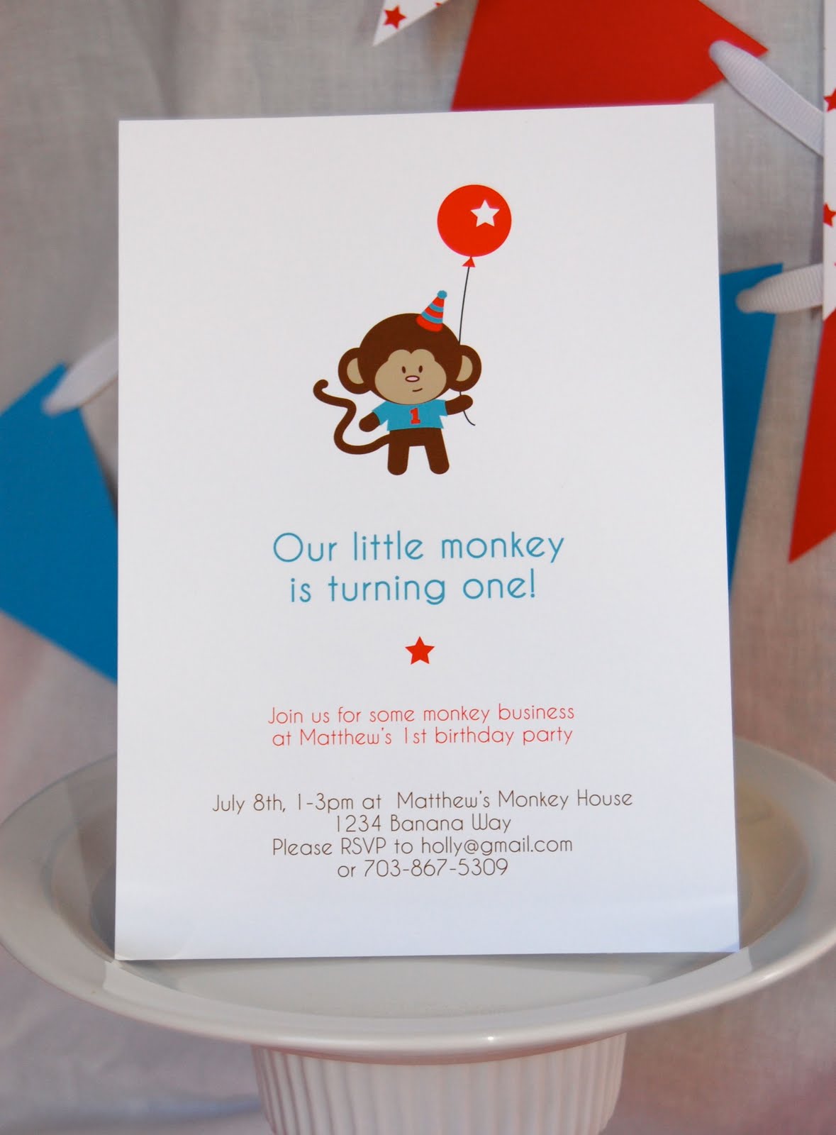 I’m excited to show off my new line of party ware: Monkey Business! Our little monkey man is cute and cuddly and completely customizable. He started out as a hand drawn picture, then with a little magic, we got him to hop onto our invitations, cupcake toppers and wrappers. He works for bananas, but I hear he really loves birthday cake.