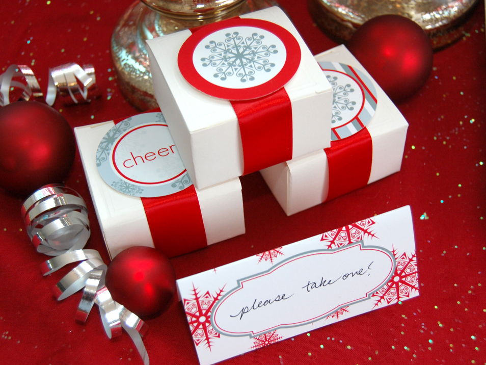 Softly falling snowflakes and the warmth of company in a moment of holiday celebration brings good cheer. And a few little special printable touches at your party or for gift giving make those moments all the more memorable.