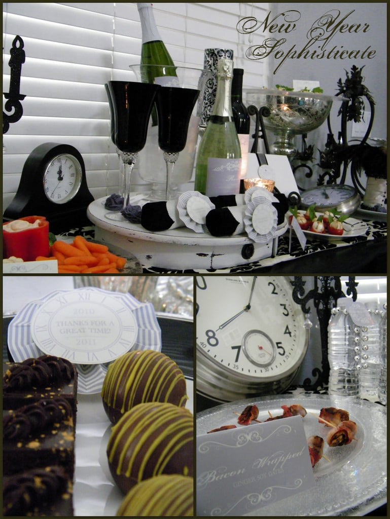 It’s a ball designing for children, but every once in awhile, it’s nice to step aside and do something for an older crowd. It was nice to have a breath of fresh {creative} air when I had the chance to work on a little collaboration with Natalie at Southern Belle’s Charm (don’t you just love that name?). She provided all the concept, styling and yummy appetizers for this New Year’s Sophisticate display!