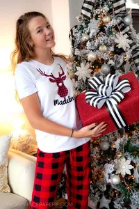1. Weekend Crafts – layered vinyl name Christmas pajamas