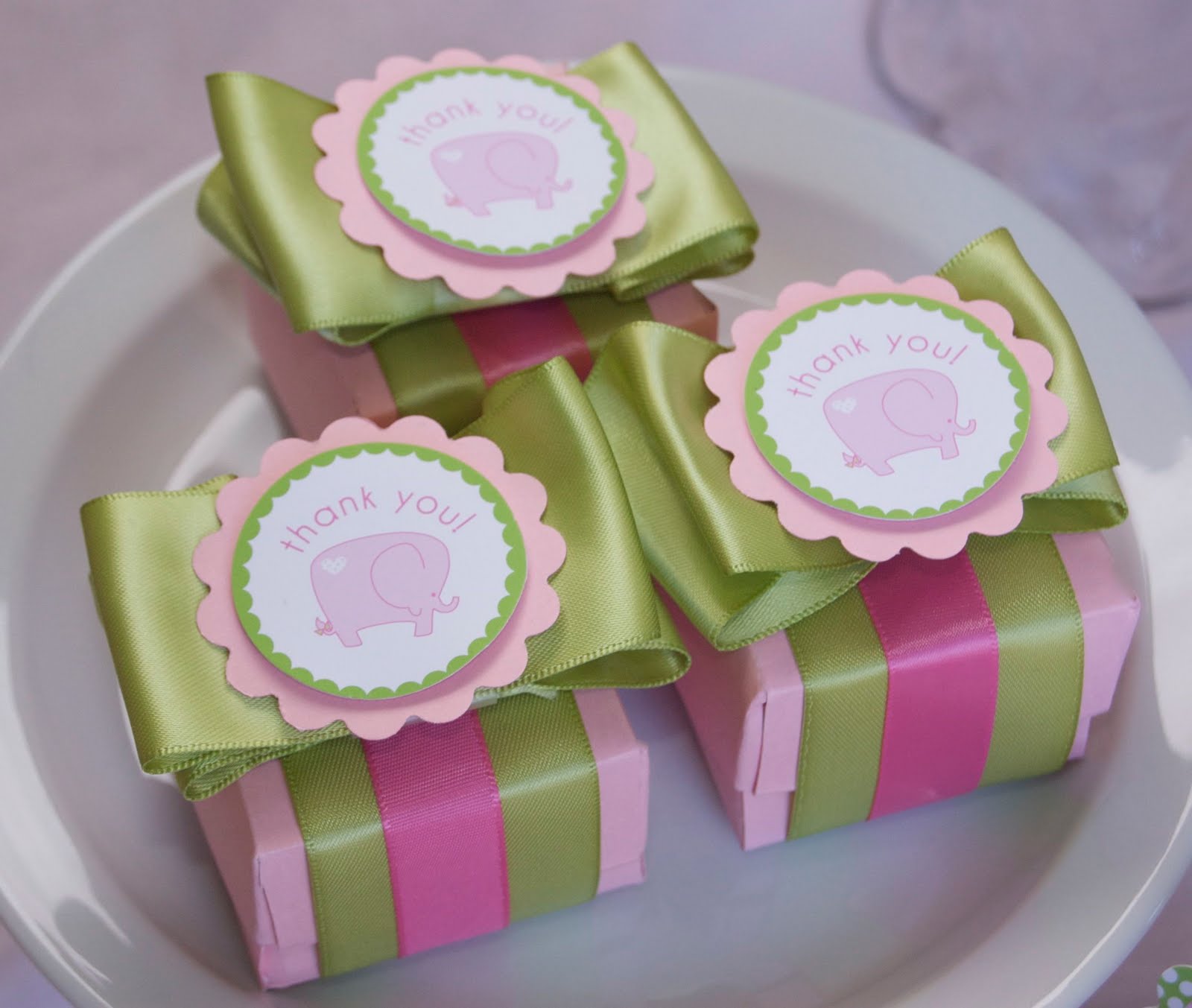 I got a little crazy with the party circles and made some precious little favor boxes for the well-wishers coming to the shower. I actually made the little boxes, too! There will be a tutorial, soon, I promise.