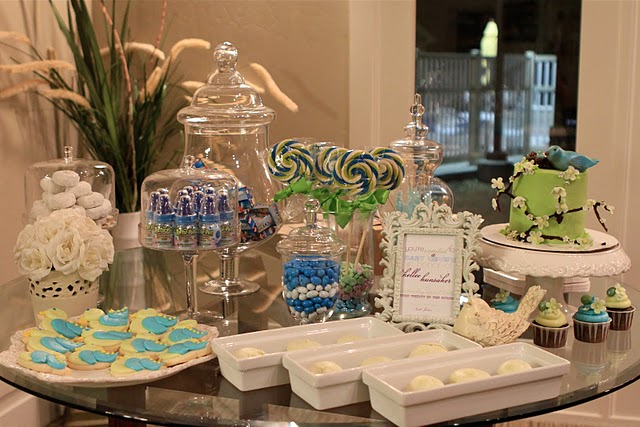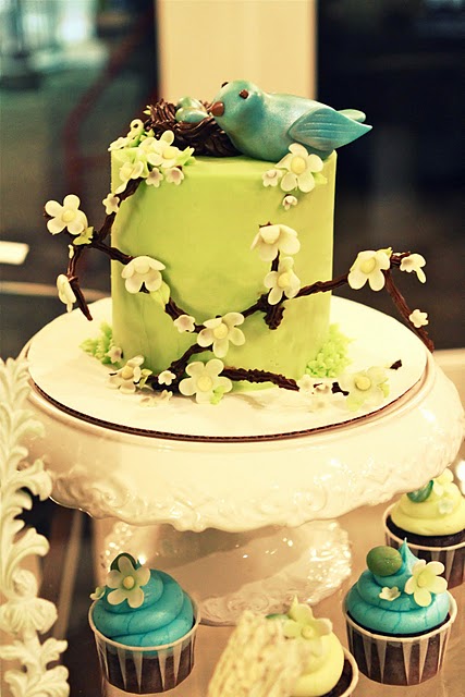 Save the Date for Cupcakes recently covered this “How Tweet it Is” themed shower by Kaysi of Fabu Weddings & Events. I love all the little details and beautiful glassware used in this display and the soft touches of color against all the white. See more pictures here!