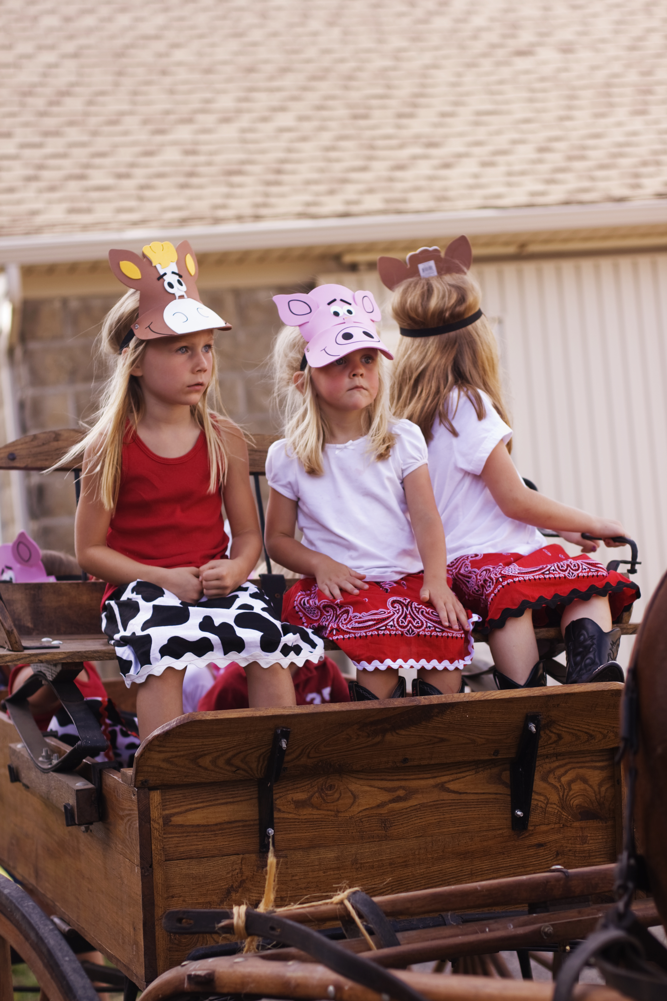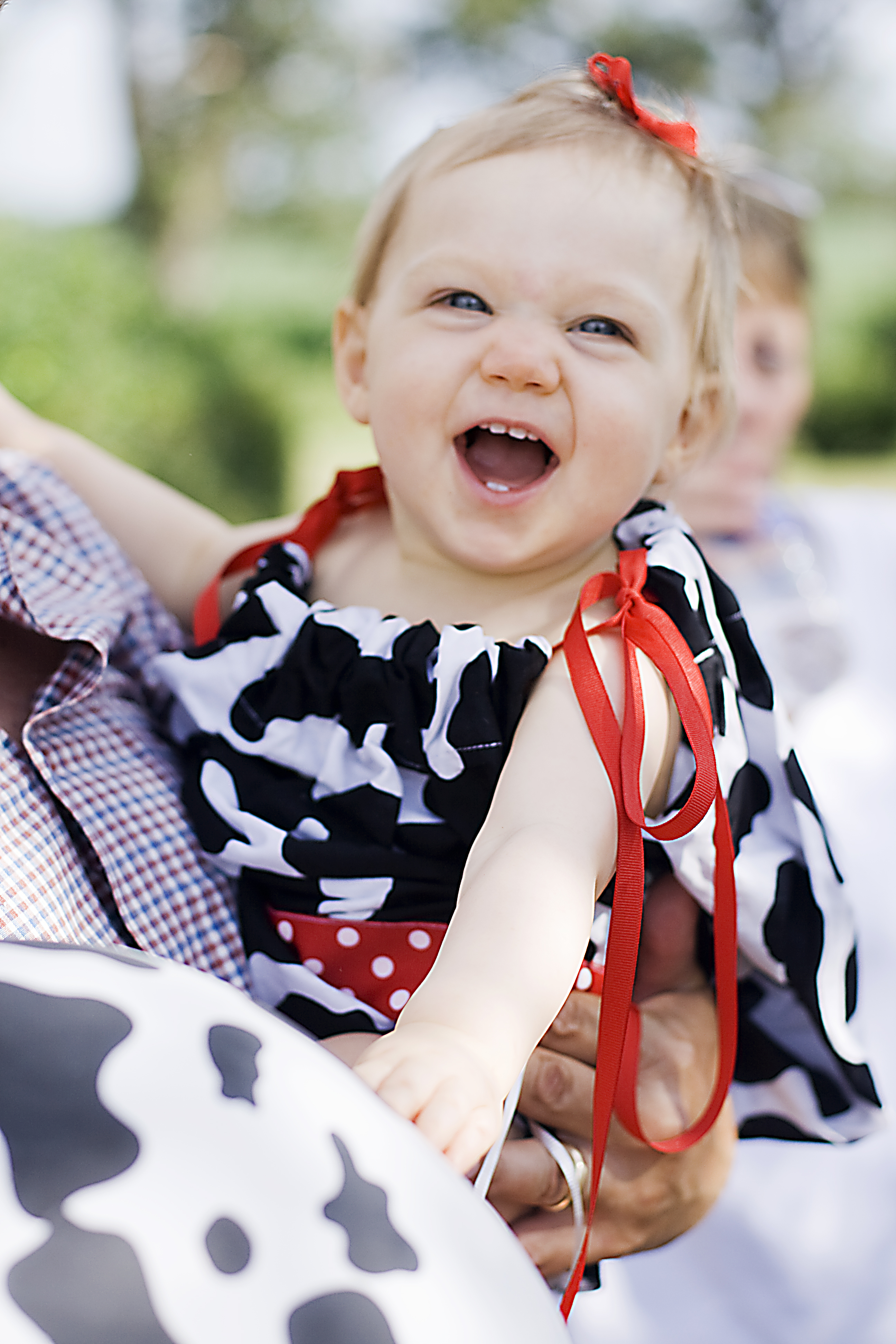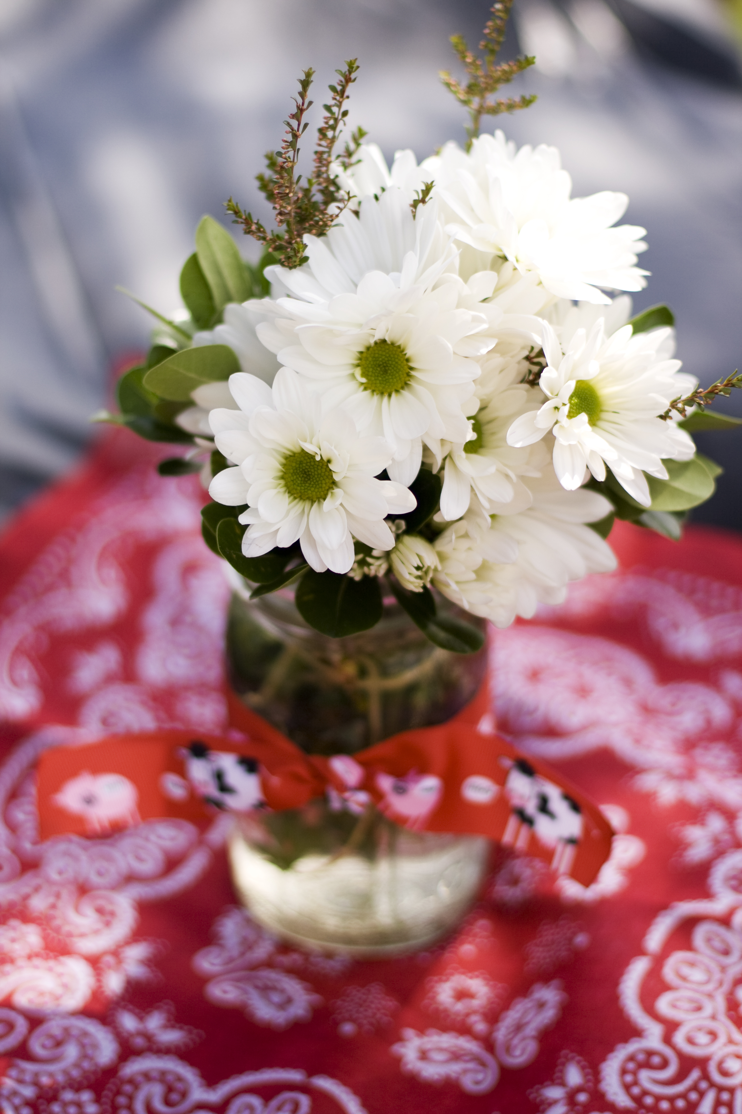 Daisies in a mason jar are inexpensive party decor that really help to bring vibrance to the setting. I also love how she used some moving decorations in her party – the children – to help set atmosphere. Their matching bandana and cow print outfits are SO cute! Held at a real farm, complete with horses and hayrides, this party certainly made for a memorable day for family and friends. Thanks again to Tara for sharing the pictures!