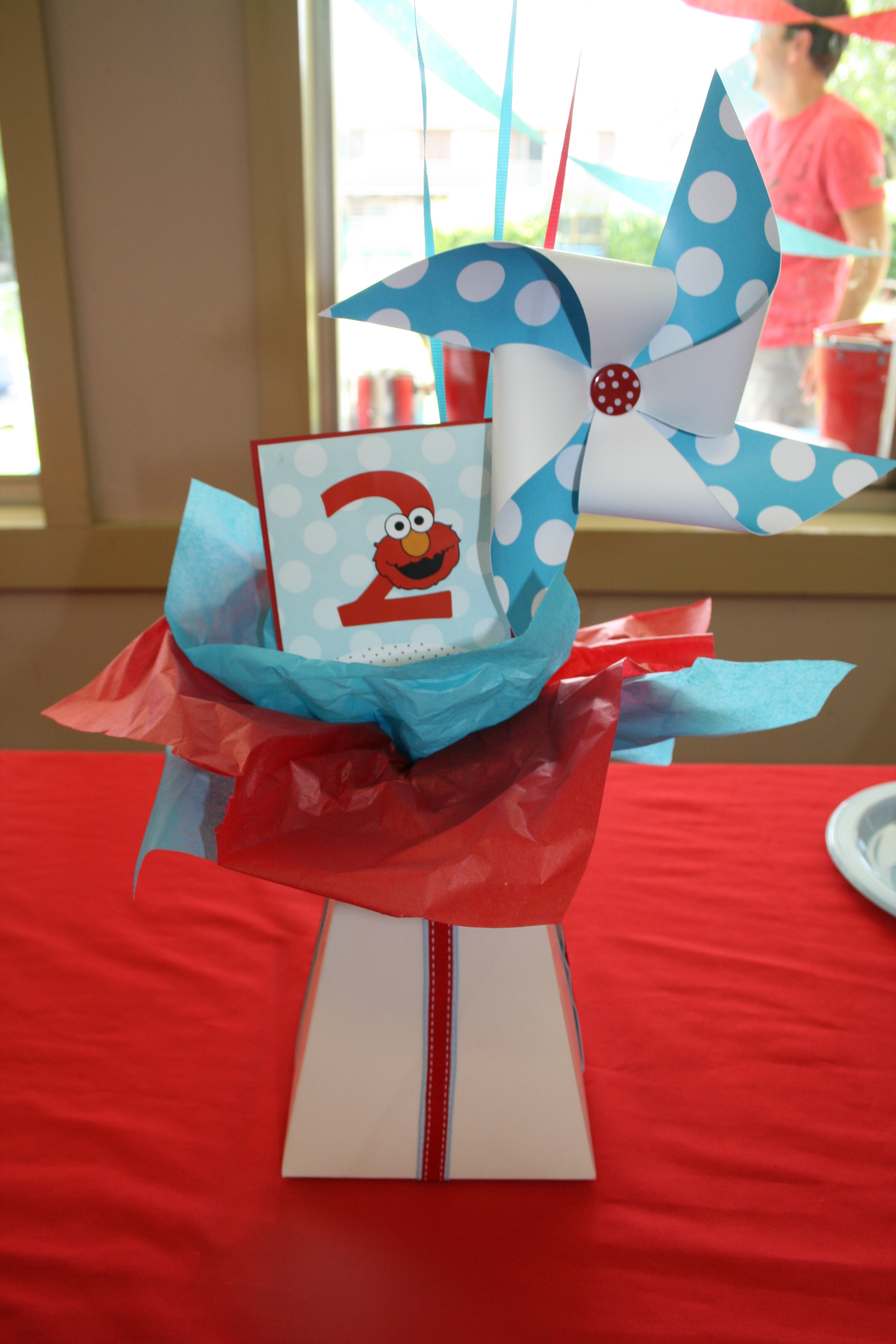 I just love how creative Cecelia was with all the printables –she used scrapbook paper to make pinwheels and the tops of the invitations to make these darling Bloombox centerpieces