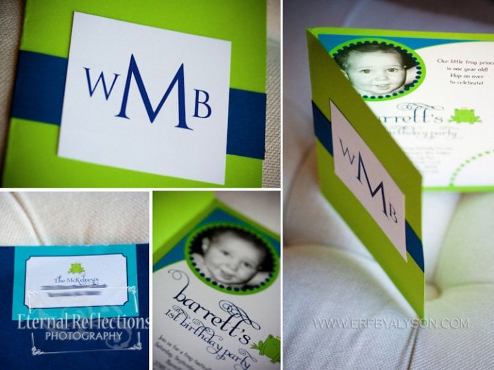 One of my favorite customers, Miss Maggie M., is a kindred southern spirit. She has a deep love for her family and friends, and that flair all southern women seem to be innately born with. I had the privilege of working with her to customize the frog prince set so she could throw a 1st birthday party for her precious little man! She is one dedicated momma and I was simply amazed at what she came up with with just a few files in her hands. Barrett is one lucky little boy!