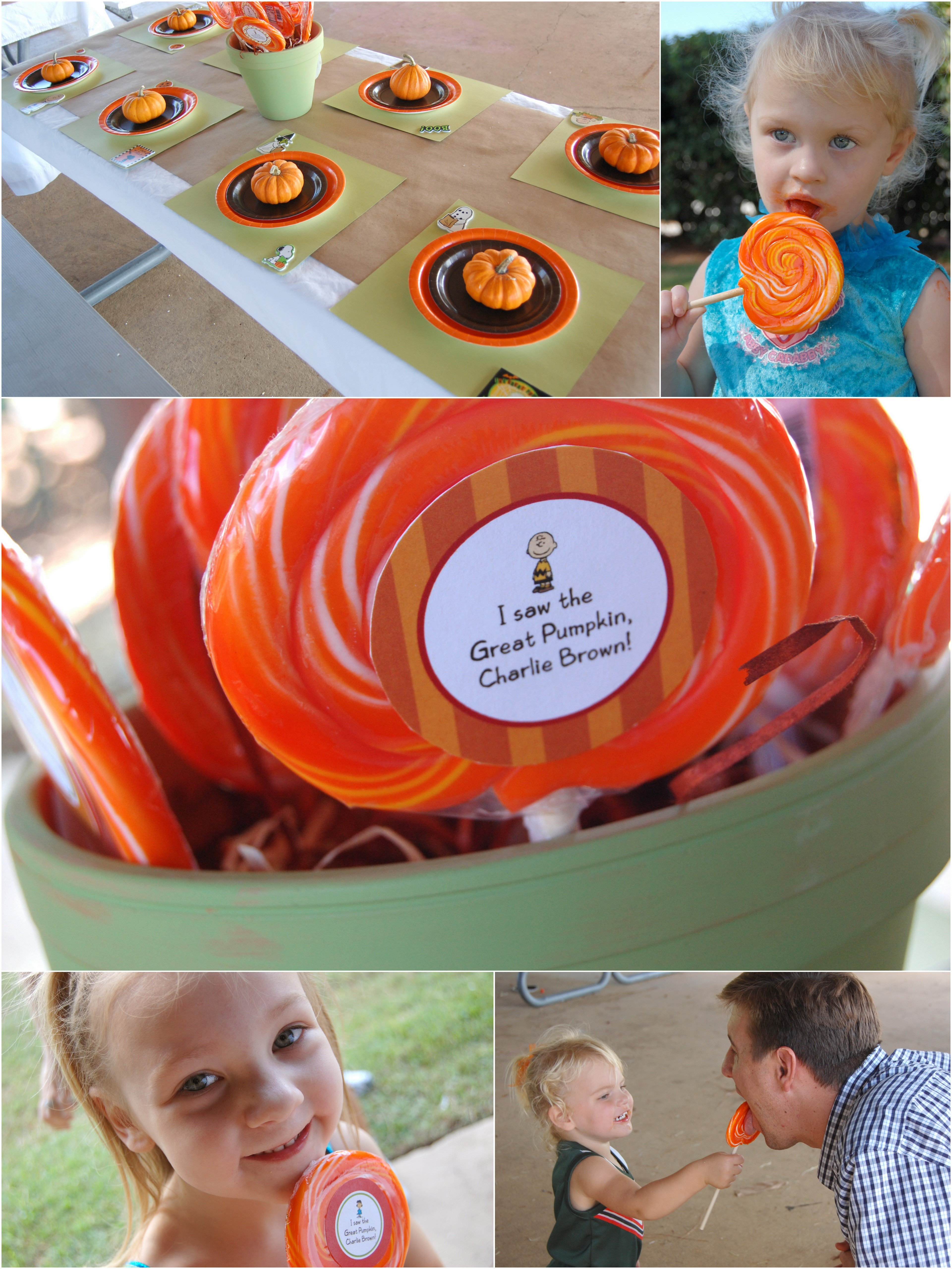 My friend Karrie has two children born very close together. And since they’re still young, a joint party for them both makes it a bit easier on her. This year she wanted to do an “It’s the Great Pumpkin, Charlie Brown” theme for the kids so they would have another chance to wear their Charlie Brown and Lucy costumes. This was the first time I have helped style a party for someone else–and I was pretty happy with Karrie and I’s efforts!