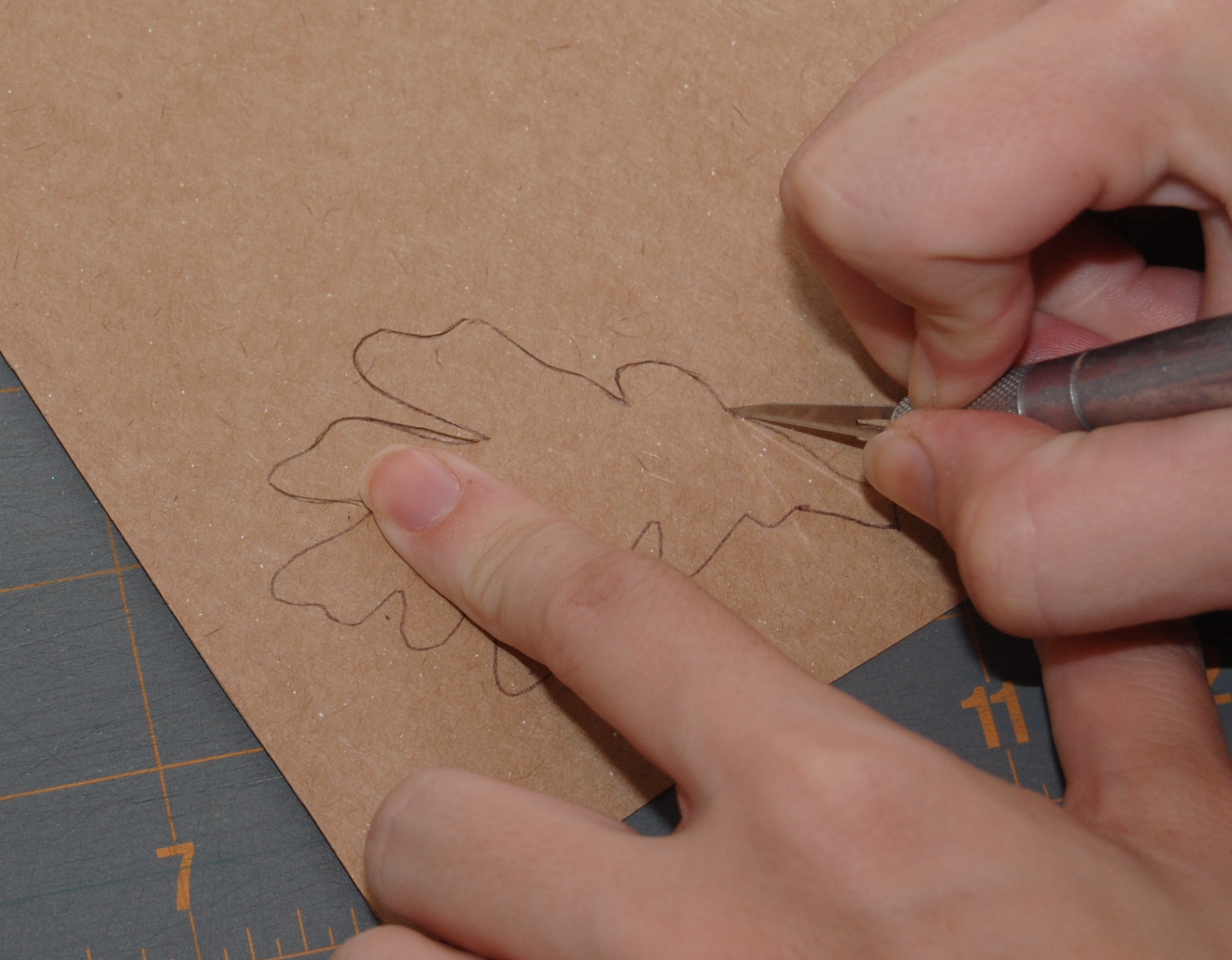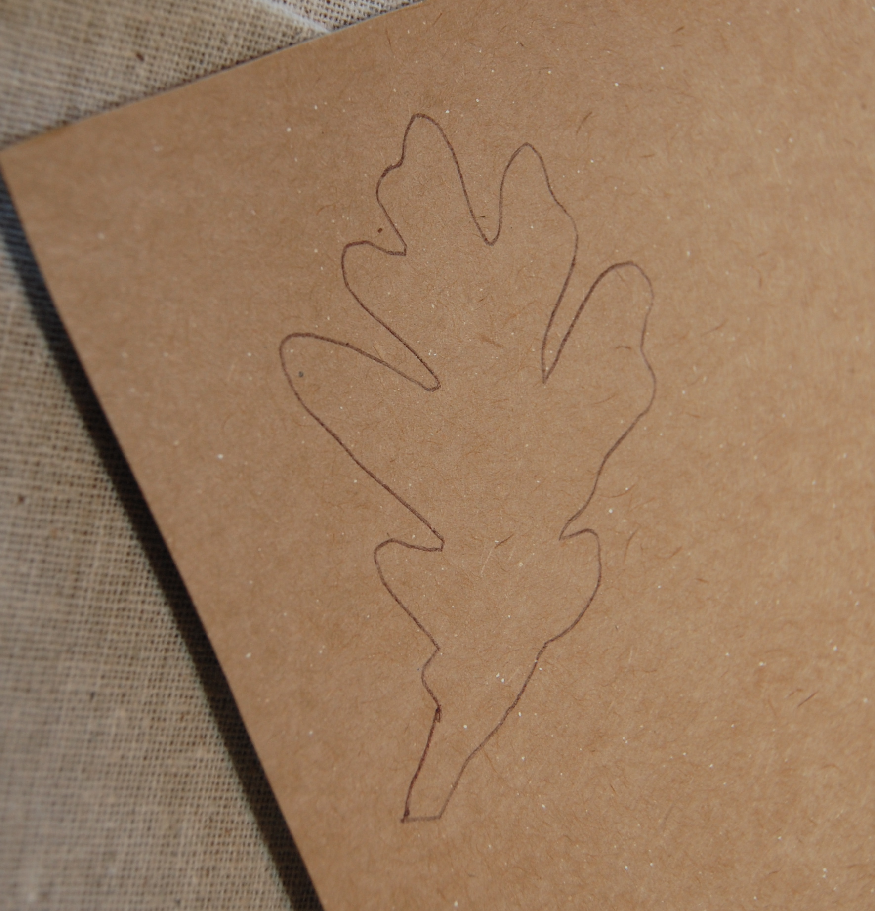 Print out the leaf template and trace it onto your scrap board. I used a soon-to-be-recycled cereal box.