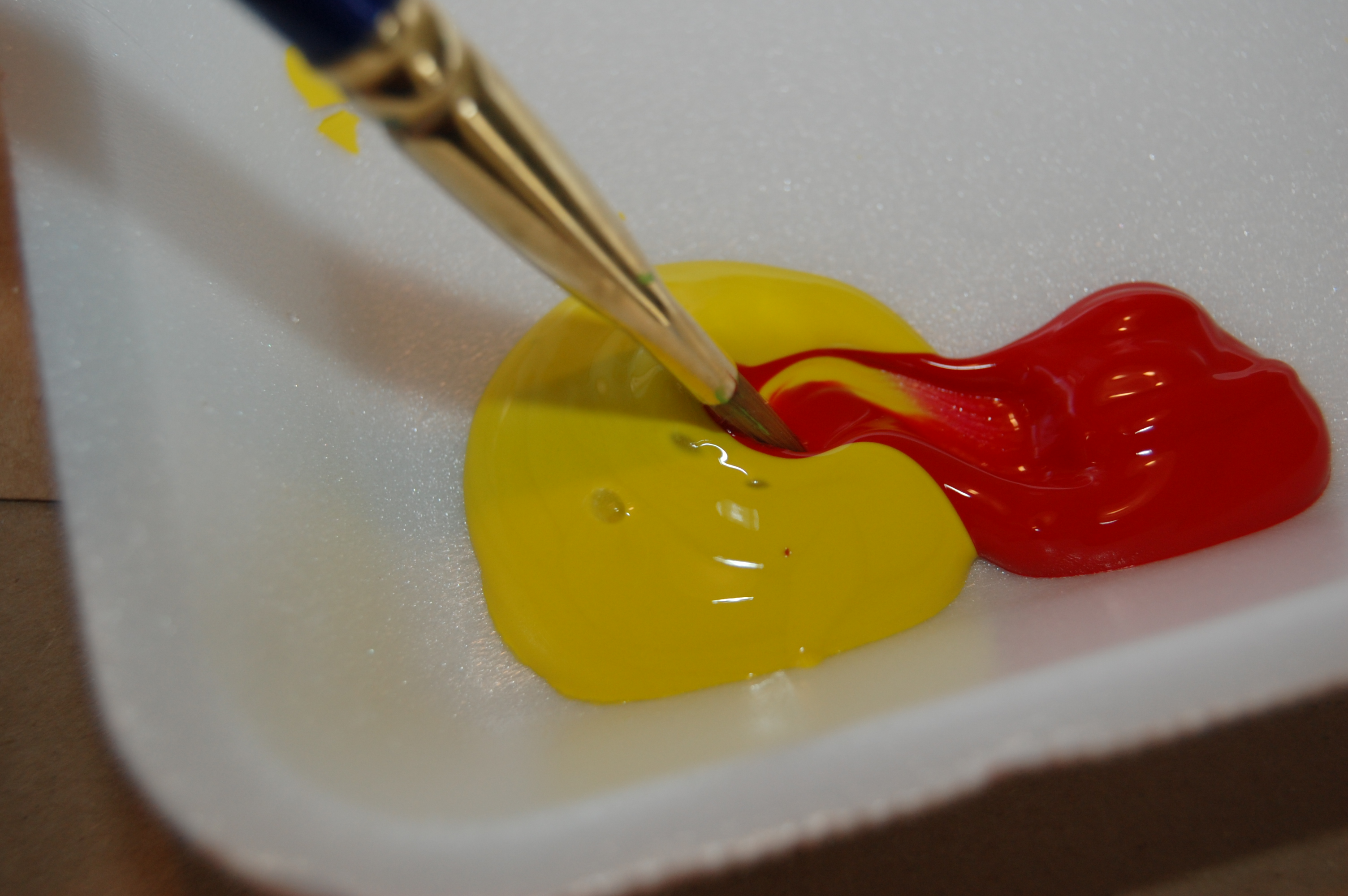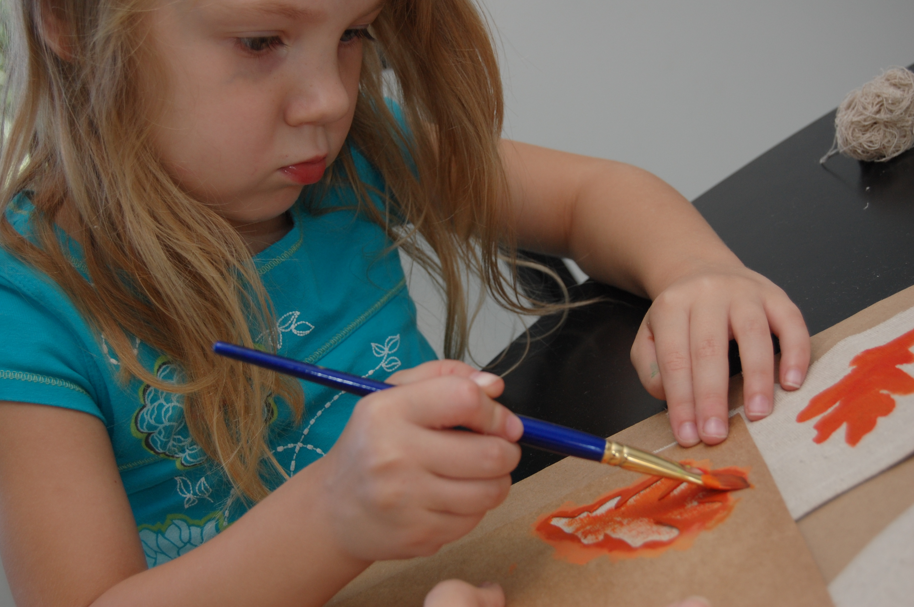 I admit to a bit of laziness and didn’t go to the store to get orange paint, as I had red and yellow on hand. Two parts yellow and one part red and we were on our way to painting some leaves!